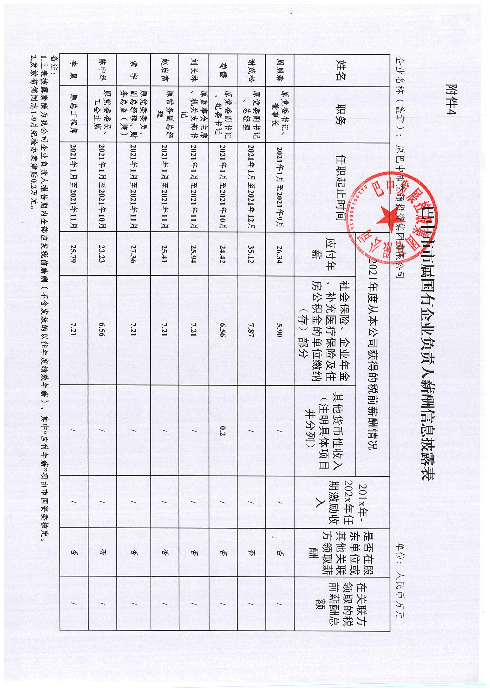 巴中市市屬國(guó)有企業(yè)負(fù)責(zé)人薪酬信息披露表